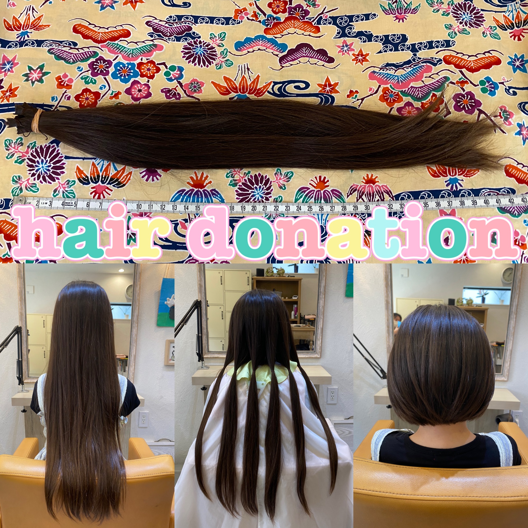 ※ ヘアドネーションとは18歳以下の髪の毛に問題を持つ子供達に無償でウィッグを届けるための材料となる31cm以上の髪の毛を寄付するボランティアです