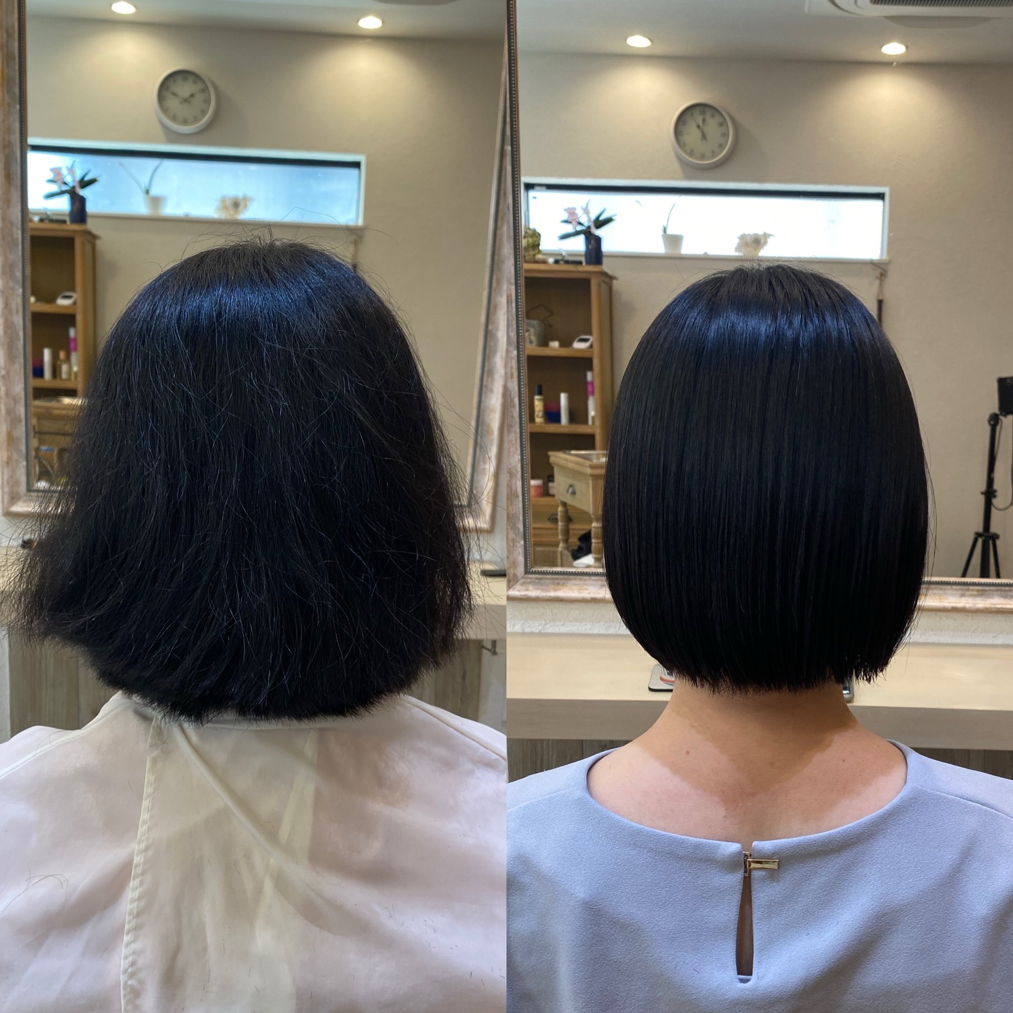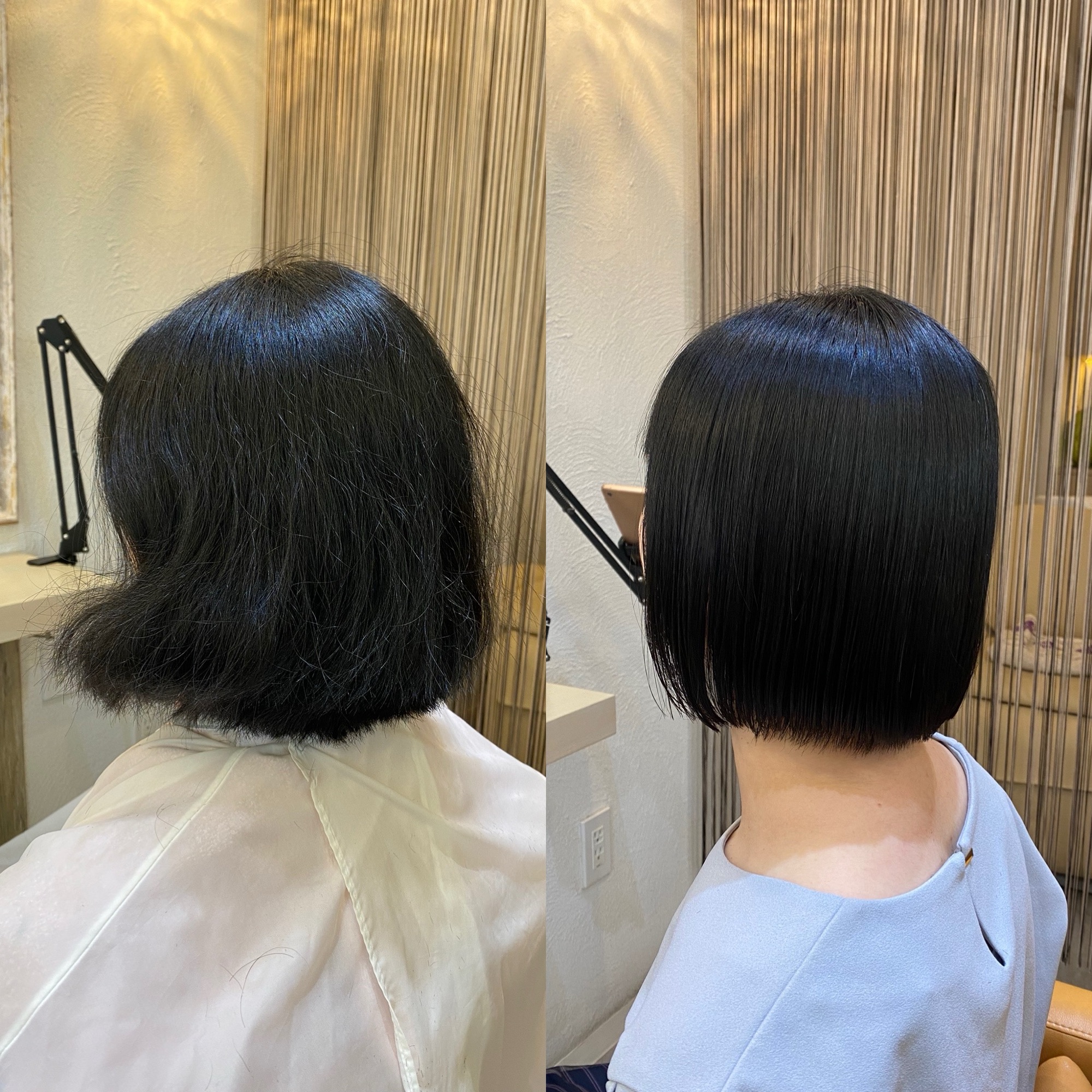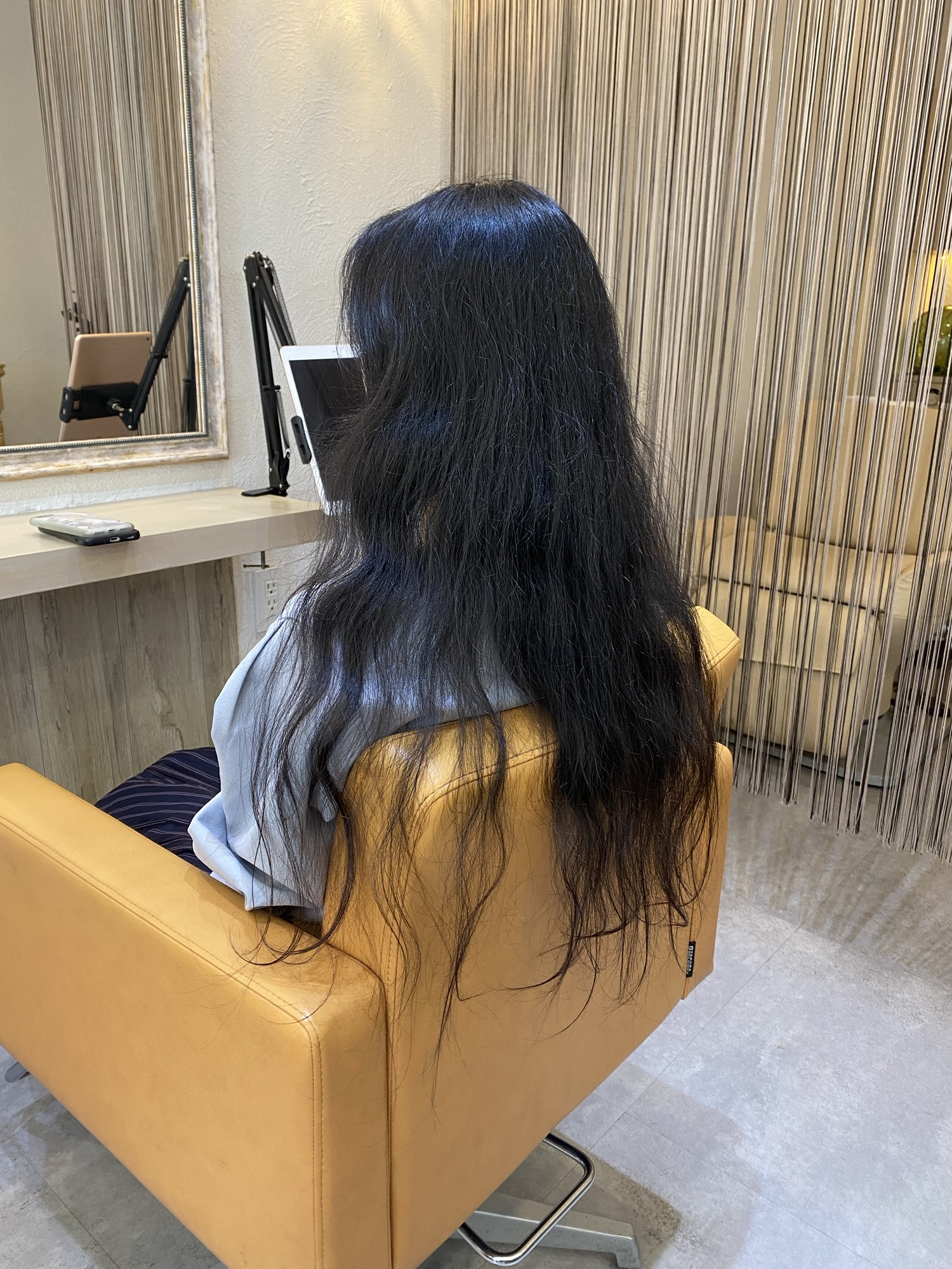 このままでは結わけないしお手入れが大変になるので髪質改善のやさしいストレートをしていきます🫡