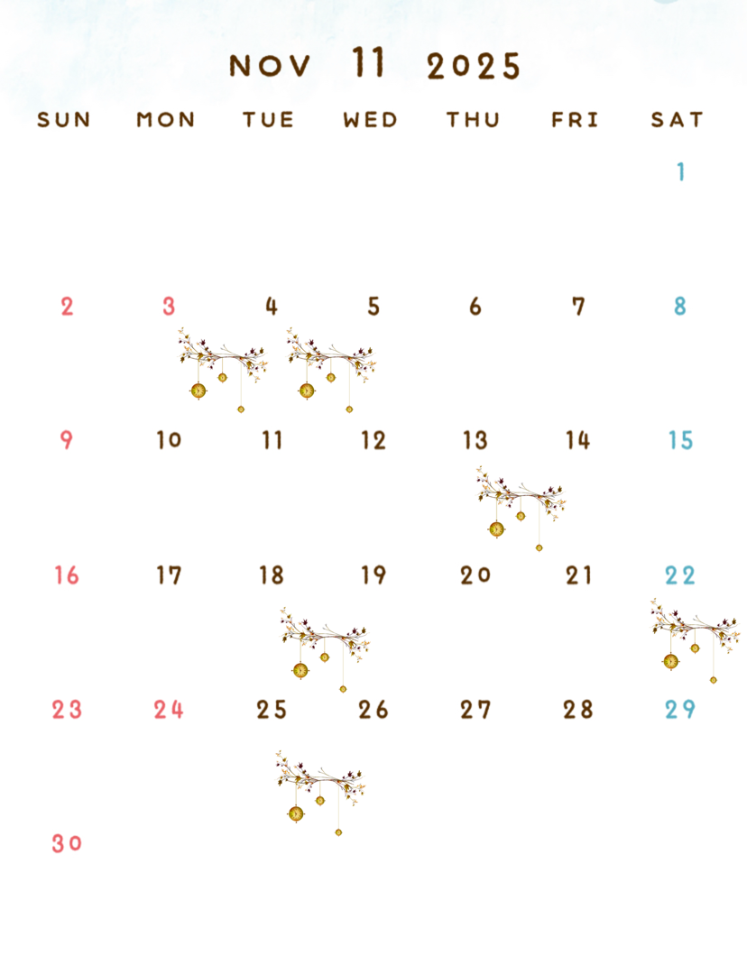 11月の休みは変則です!3(月)4(火)13(木)18(火)22(土)25(火) 11(火)は営業しますのでよろしくお願いします🙇