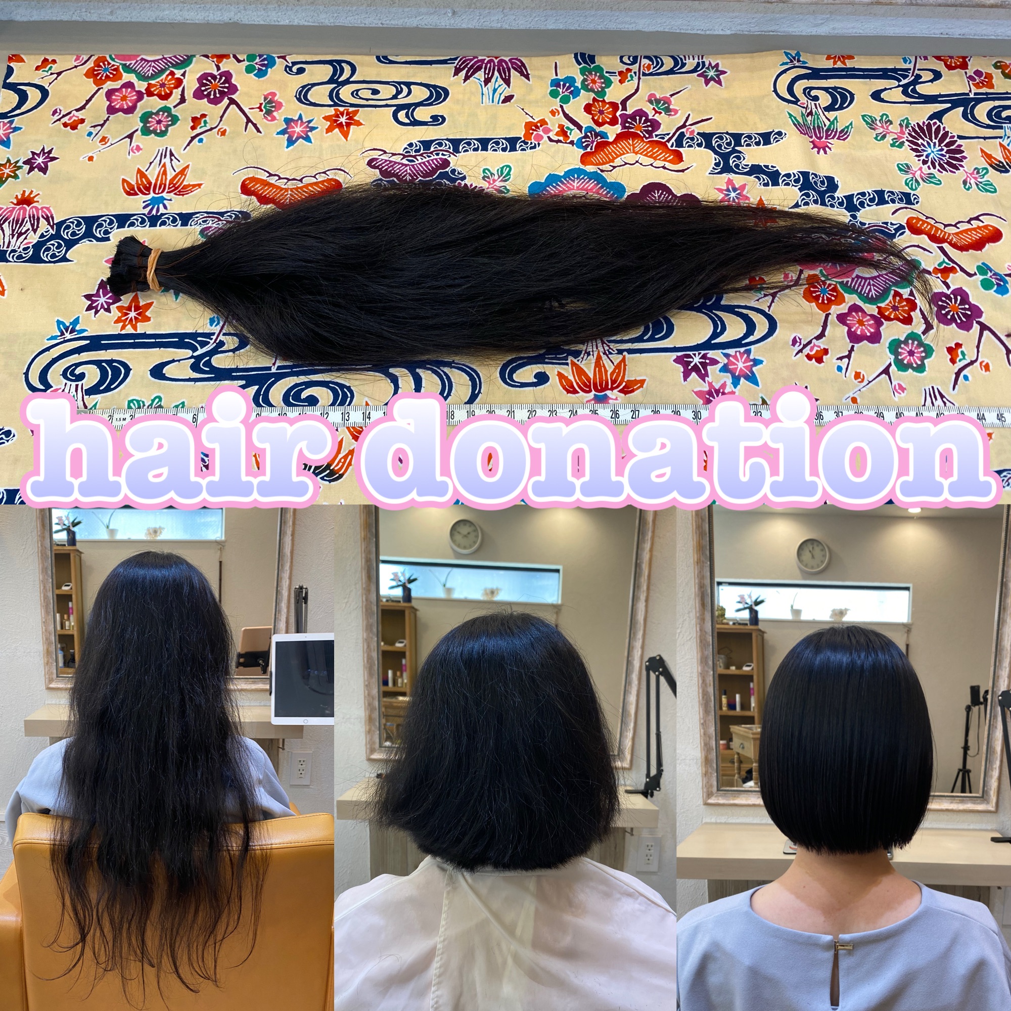 ※ ヘアドネーションとは18歳以下の髪の毛に問題を持つ子供達に無償でウィッグを届けるための材料となる31cm以上の髪の毛を寄付するボランティアです