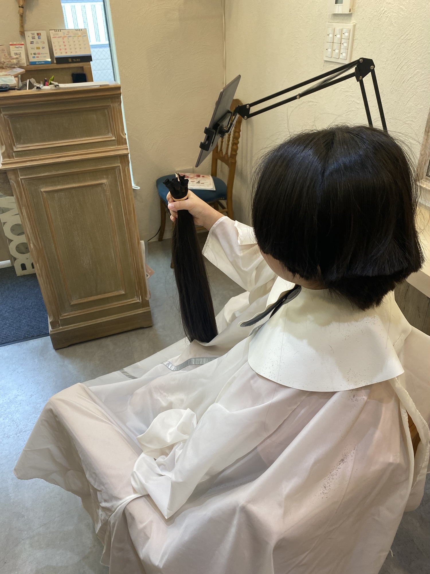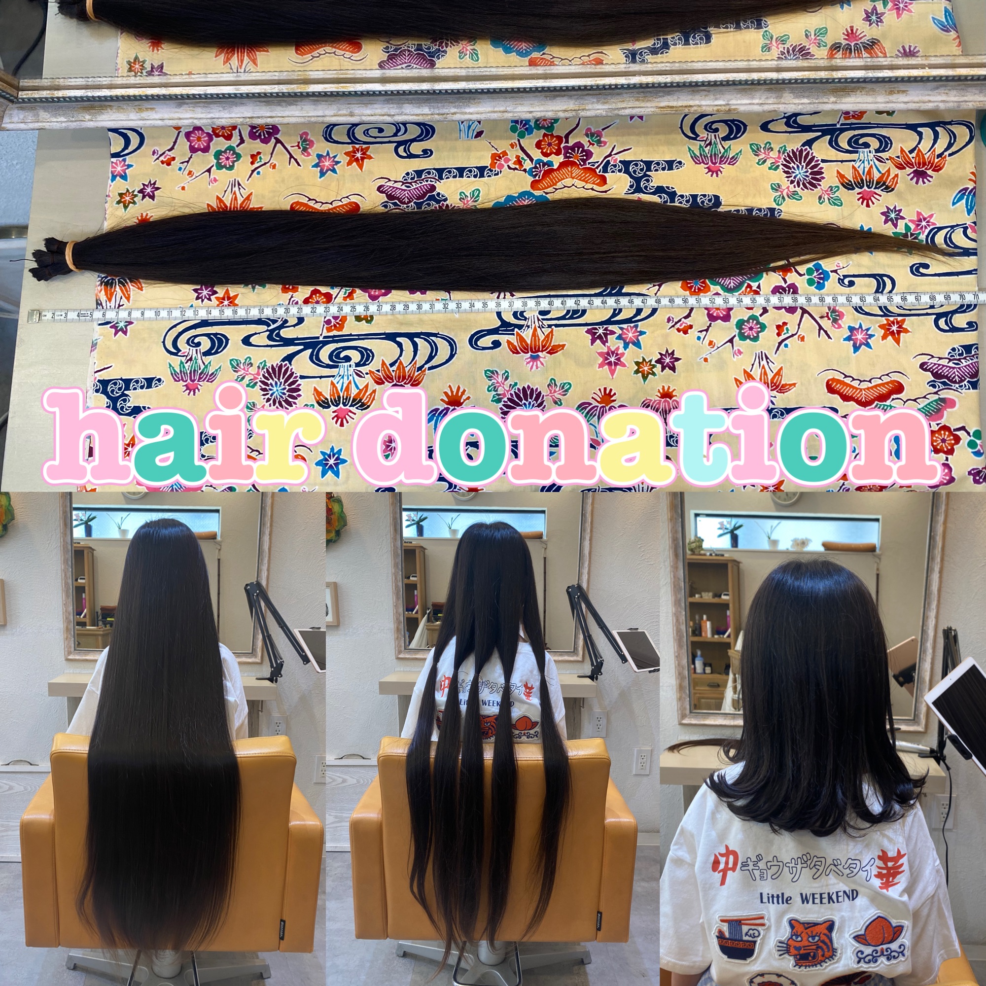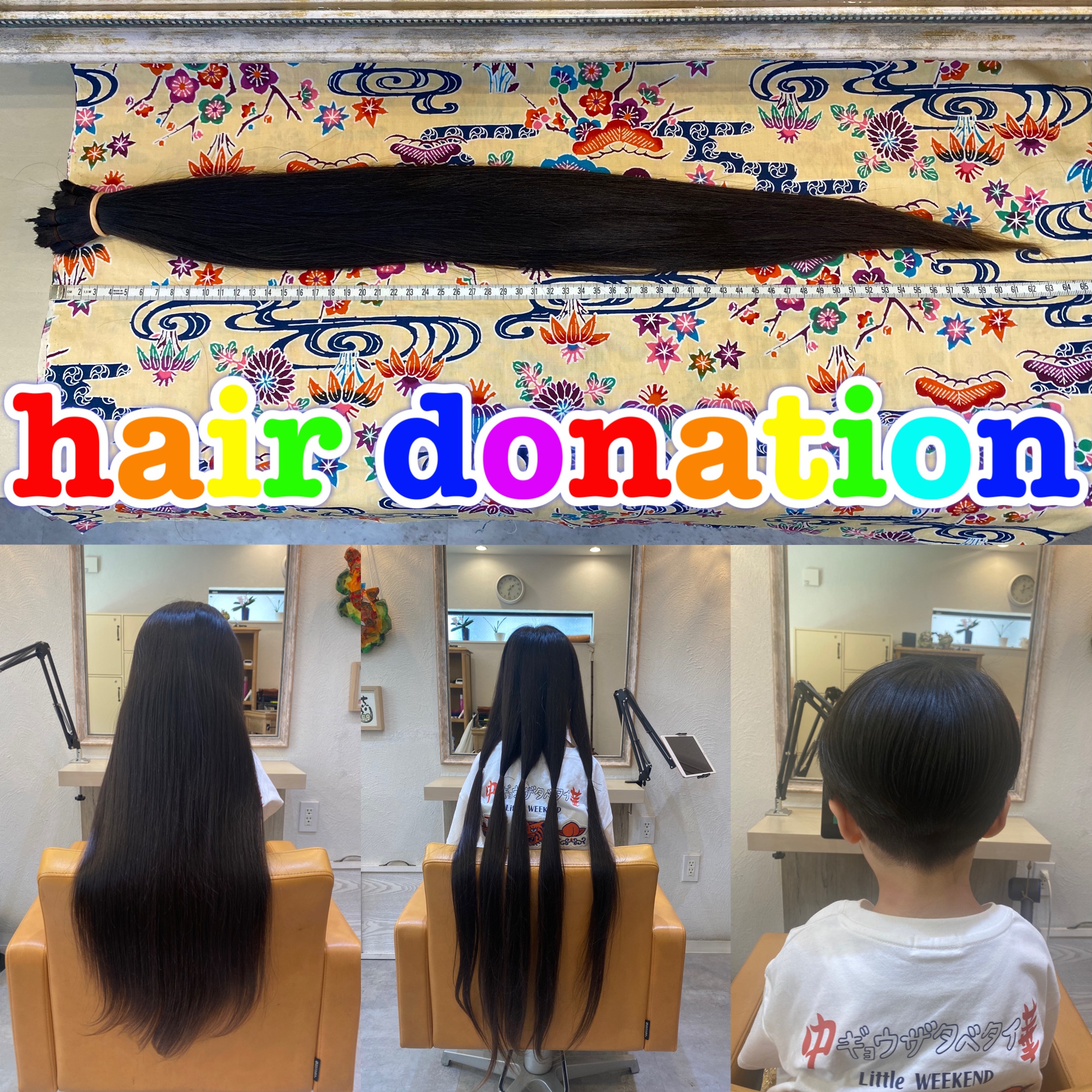 ※ ヘアドネーションとは18歳以下の髪の毛に問題を持つ子供達に無償でウィッグを届けるための材料となる31cm以上の髪の毛を寄付するボランティアです