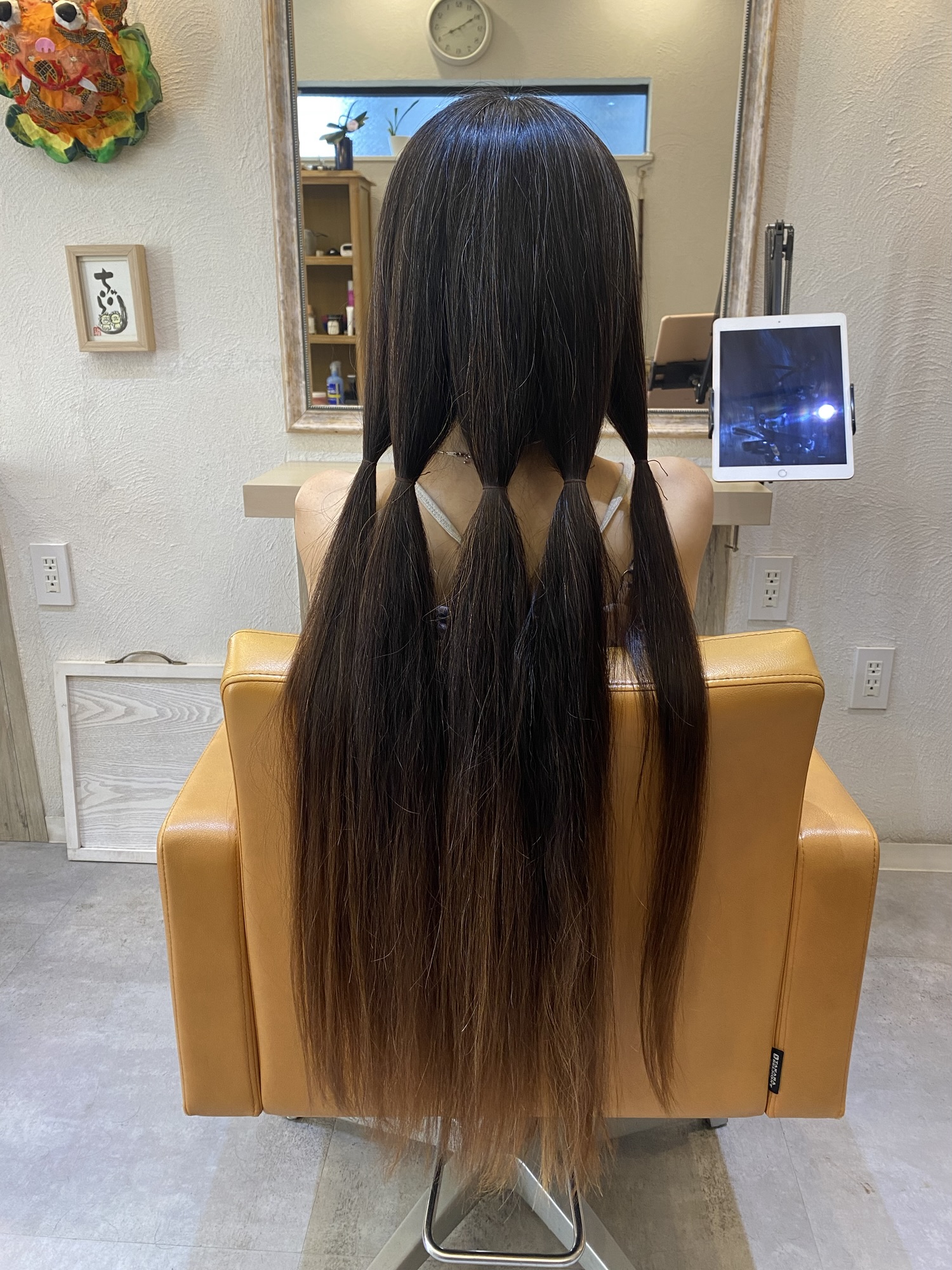 前回は4年くらい前にお友達のお店でヘアドネーションをしたようで、それから伸ばして再びヘアドネーションに挑戦していただきました!
