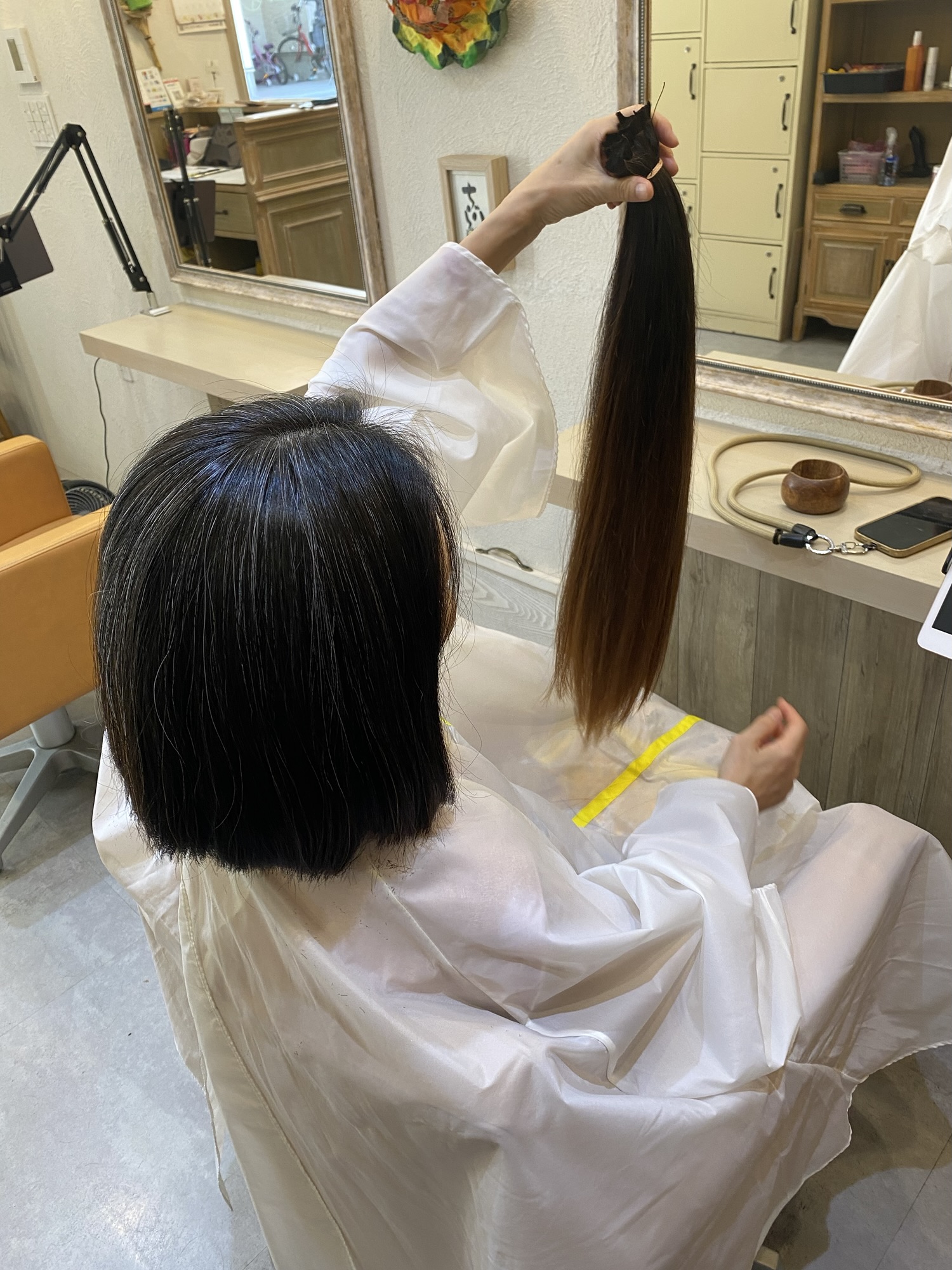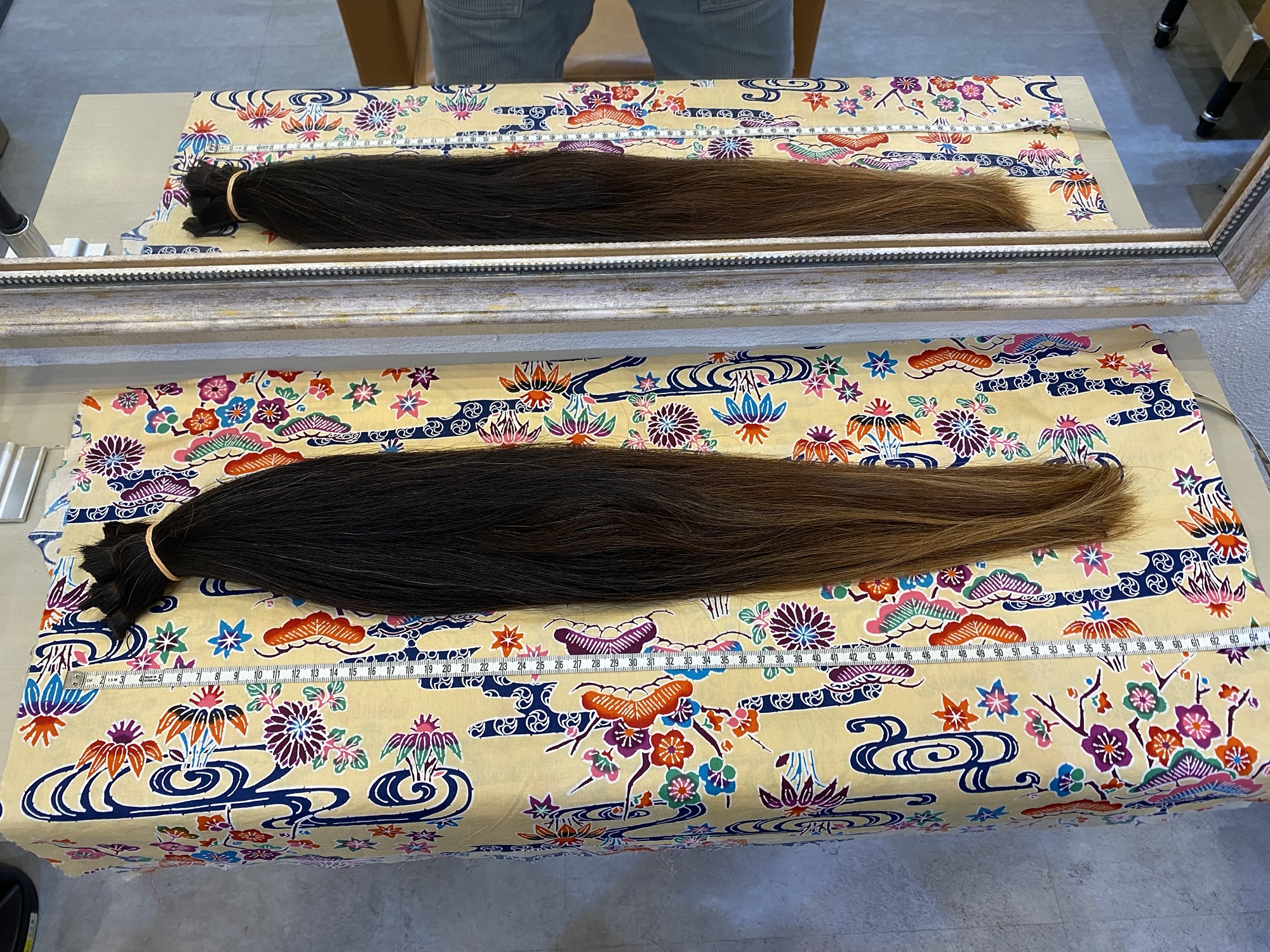 ※ ヘアドネーションとは18歳以下の髪の毛に問題を持つ子供達に無償でウィッグを届けるための材料となる31cm以上の髪の毛を寄付するボランティアです