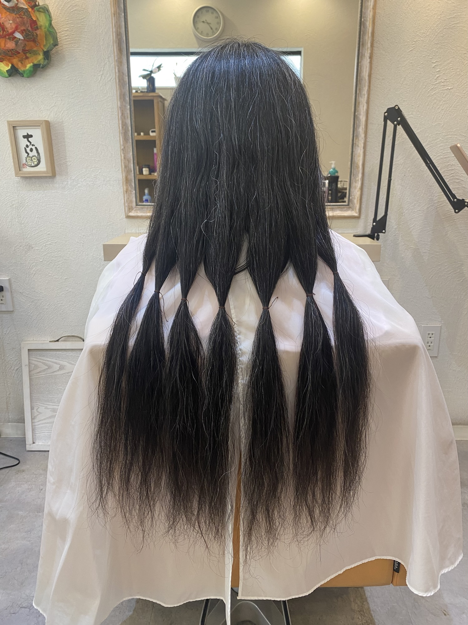 ※ ヘアドネーションとは18歳以下の髪の毛に問題を持つ子供達に無償でウィッグを届けるための材料となる31cm以上の髪の毛を寄付するボランティアです