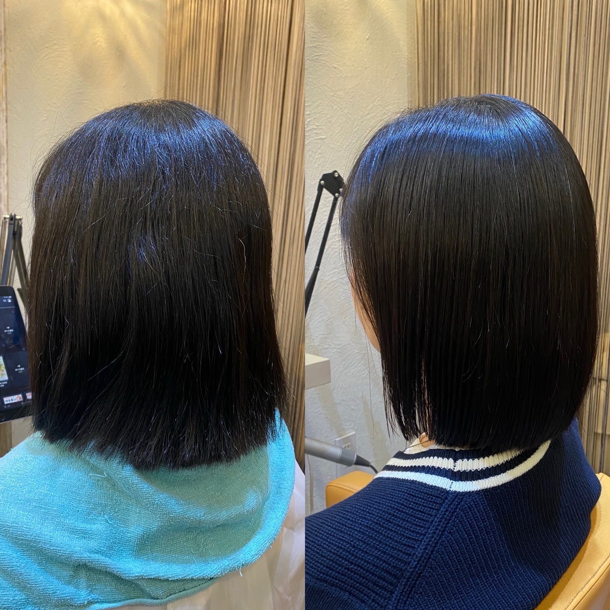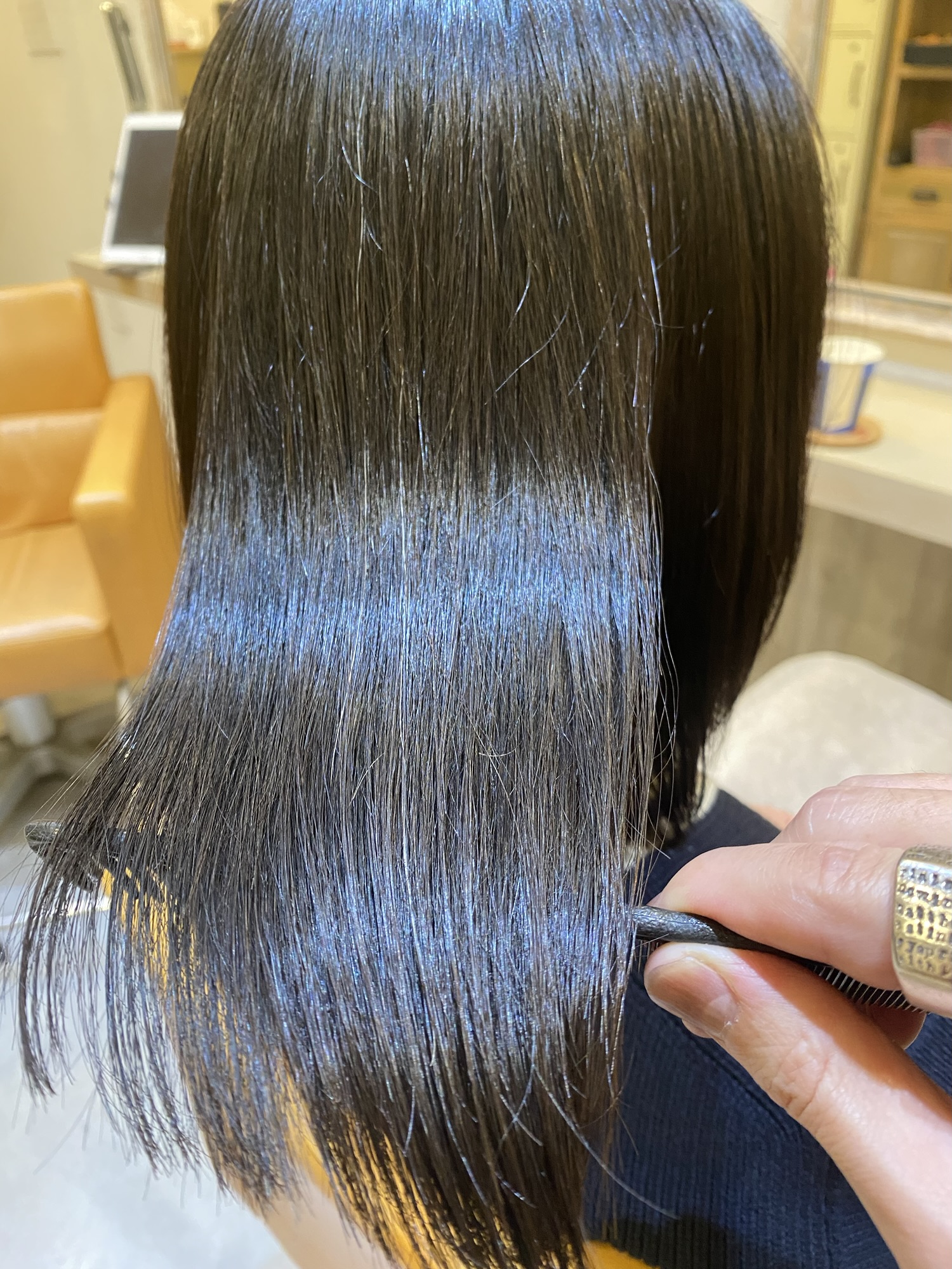- パキッとしたストレートではなく毛先に柔らかさが残るやさしい仕上がりになります